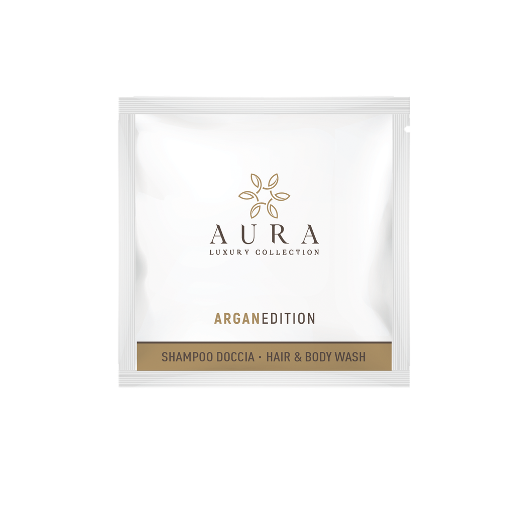 Scopri il nuovo packaging delle bustine shampoo-doccia all'Argan da 10 ml, .
