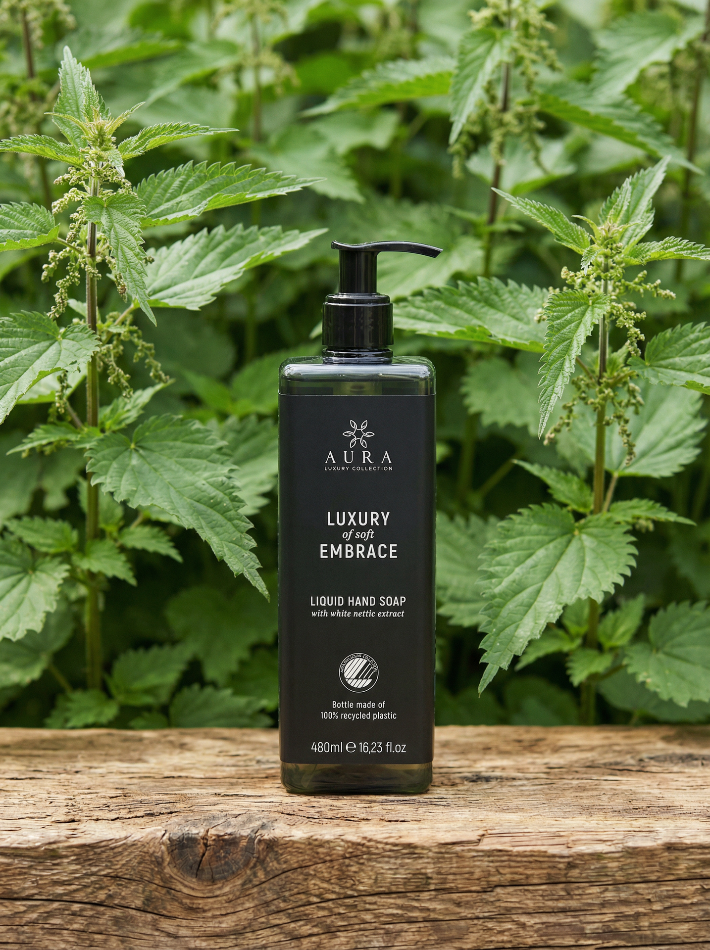 Kit sapone liquido mani con estratti di ortica in flacone inviolabile da 480 ml certificato Nordic Ecolabel